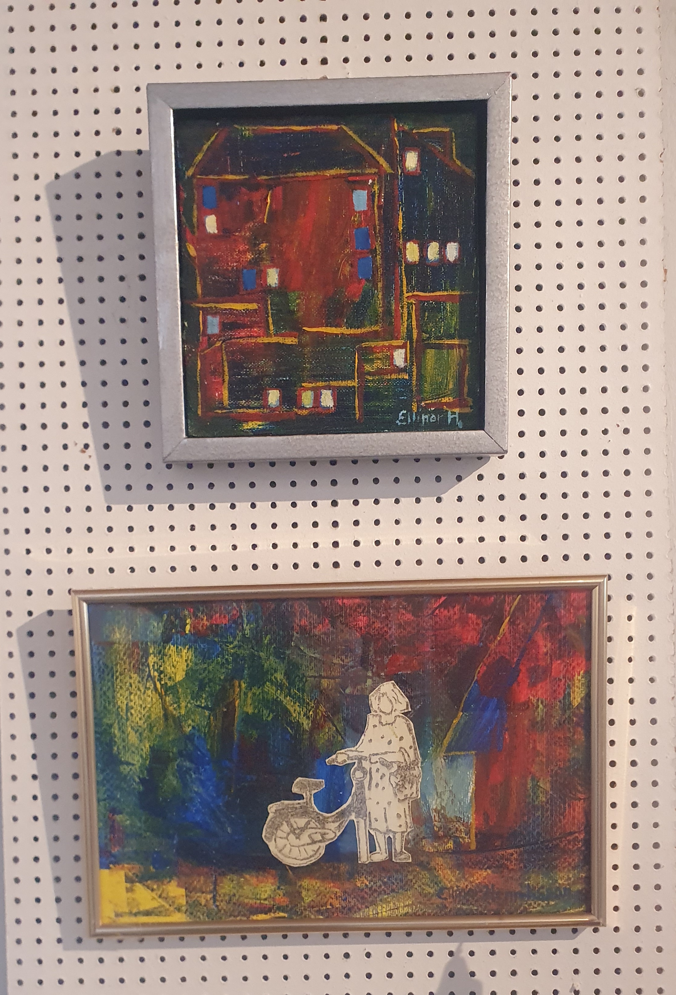 Uttrycker mig genom teckning och collage ofta blandat med måleri. Bilderna beskriver oftast människor och djur i speciella situationer.