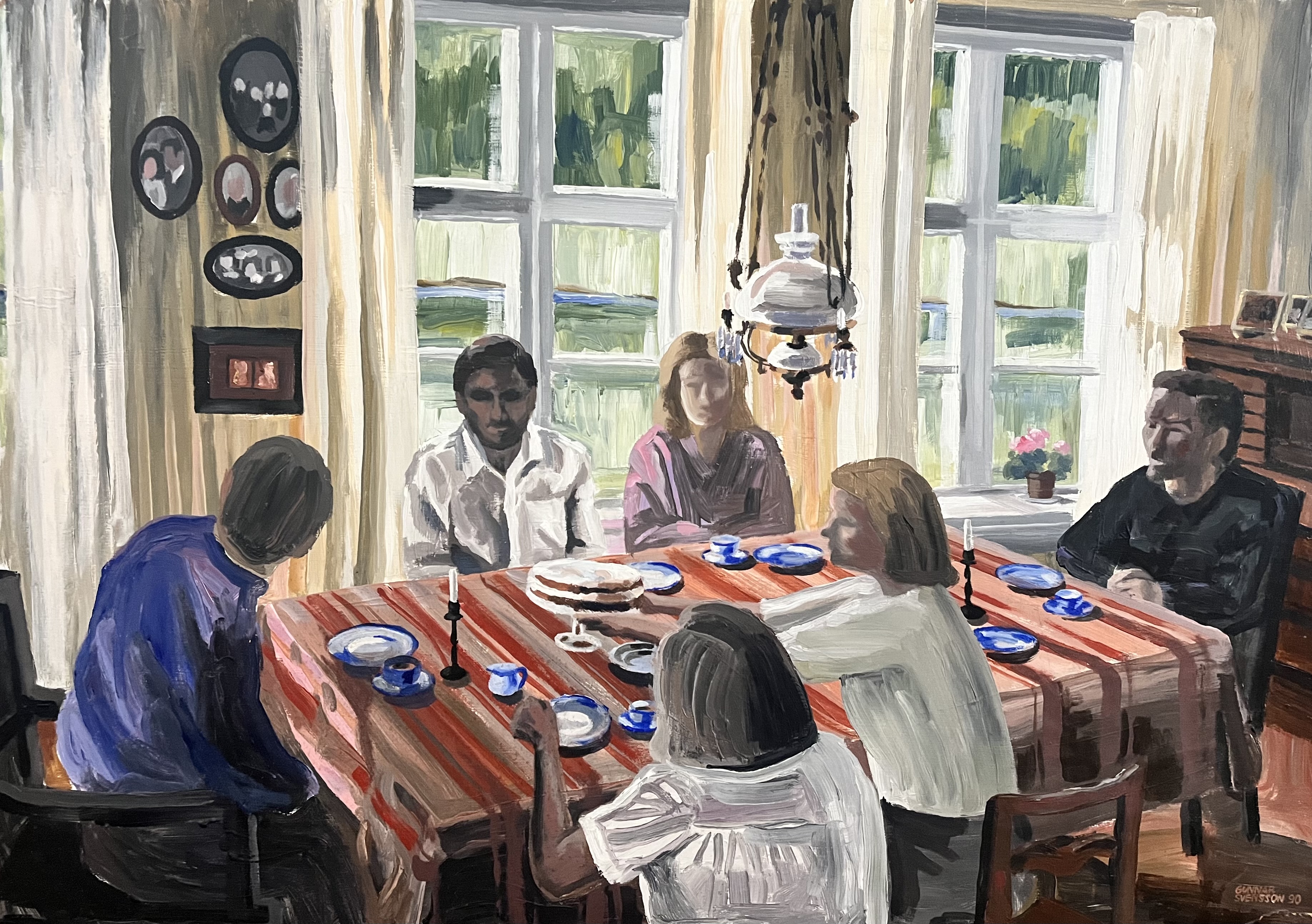 Stipendiaten Anna Israelsson ställde ut sina akvareller på Sahlströmsgården 2022 under sin stipendievistelse. Nu är hon tillbaka och ställer ut igen, denna gång tillsammans med författaren och tecknaren Gunnar Svensson. Vad Anna och Gunnar har gemensamt? Det korta svaret är Albin Liljestrand. Men det finns fler gemensamma nämnare, som Malgomaj, kärleken till ord och erfarenhet av att bryta upp och börja om i norra Värmland. Utställningen har fått namnet “Kärlek”. Varför? Det säger sig självt.