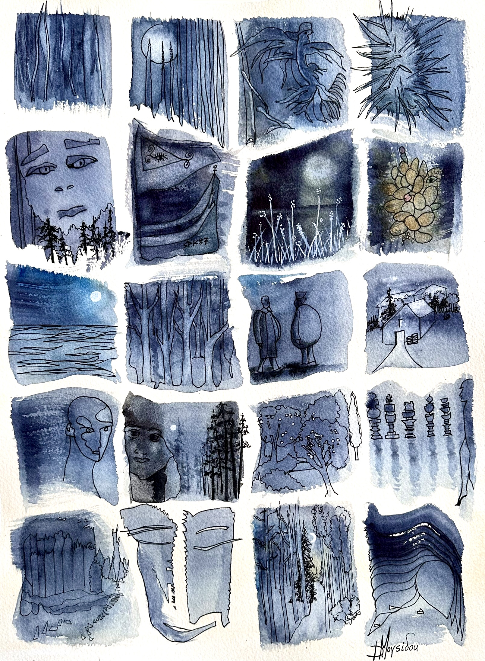 Despina Moysidou är en konstnär från Grekland som delar sin tid mellan Göteborg och Lysvik. Hon arbetar med akvarell, akryl, kol och blandteknik och skapar verk som inte är en enkel återgivning av verkligheten, utan personliga tolkningar fyllda med atmosfär och känsla.