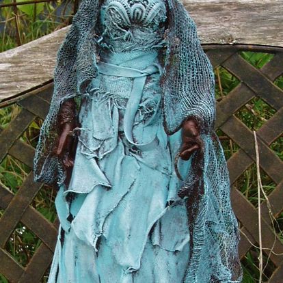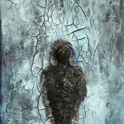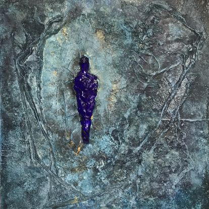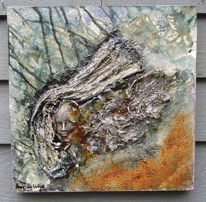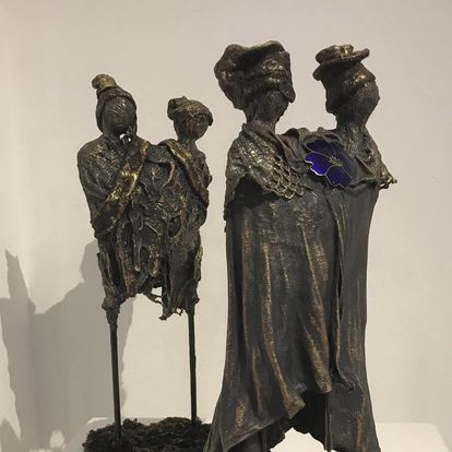 Skulpturer gör jag med ett universalmedium, där det ingår textil, vävd papper och läder.