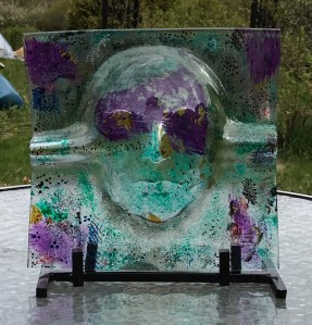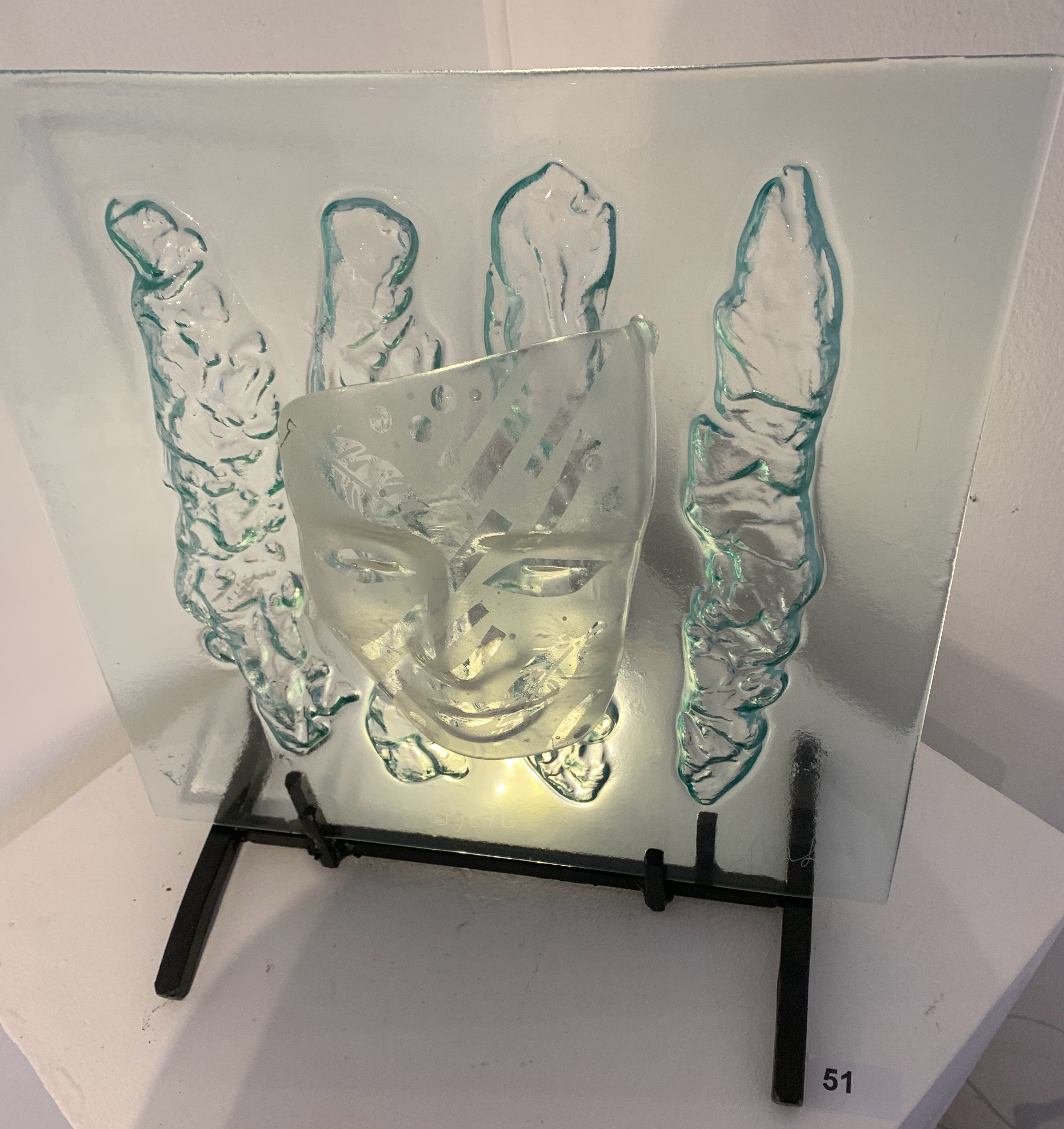 Känslan för färg och form är man kanske född med. I tonåren gick jag privat hos en konstnär och lärde mig att måla akvarell. Sen blev det en 3 års utbildning inom textil. Flera kurser sen i Danmark i screentryck på textil. – Lite tokiga i glas har vår familj alltid varit. Det ligger i generna. Mormor kom från Ungern och hennes morfar drev glasbruk. Efter en dagskurs i prova-på hos Jörgen Edberg i 2006 kunde jag starta min bana med glas. 3 veckor på glaskurs i Norge därefter och sedan har det varit ett 20-tals kurser i Sverige och Norge i olika tekniker. I 1989 slutade jag att måla, men i 2016 ville allt plötsligt ut. Det blev något helt annat! Experimenetring med abstrakt, gjuta glas i egna former och integrera i tavlor osv. Jag slänger mig emellan olika tekniker och blandar. En period nu har det blivit mycket collage. Fotograferar alltid och använder mycket egna foton i collagen.