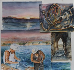 Akvareller och teckningar förekommer i mina tre böcker: Trälbåtarna, boken om Anders Fryxell och boken om Hantverkskunniga fryksdalingar som blev Stockholms byggmästare