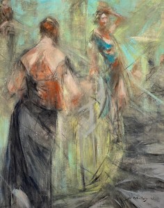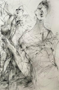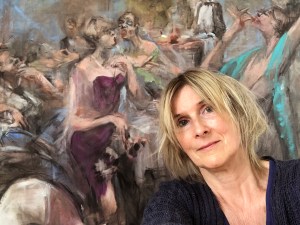 Ett figurativt måleri med en komposition som rymmer flera samtidiga händelser och målningar i målningen. Med det iscensätter jag och vill skapa en dramatik och dynamik mellan gestalterna. Jag söker liv och rörelse i kroppar och uttryck, leker med kroppsspråk och mimik. Jag inspireras av min egen process, en del i en målning kan bli ingång till en teckning eller mindre målning.