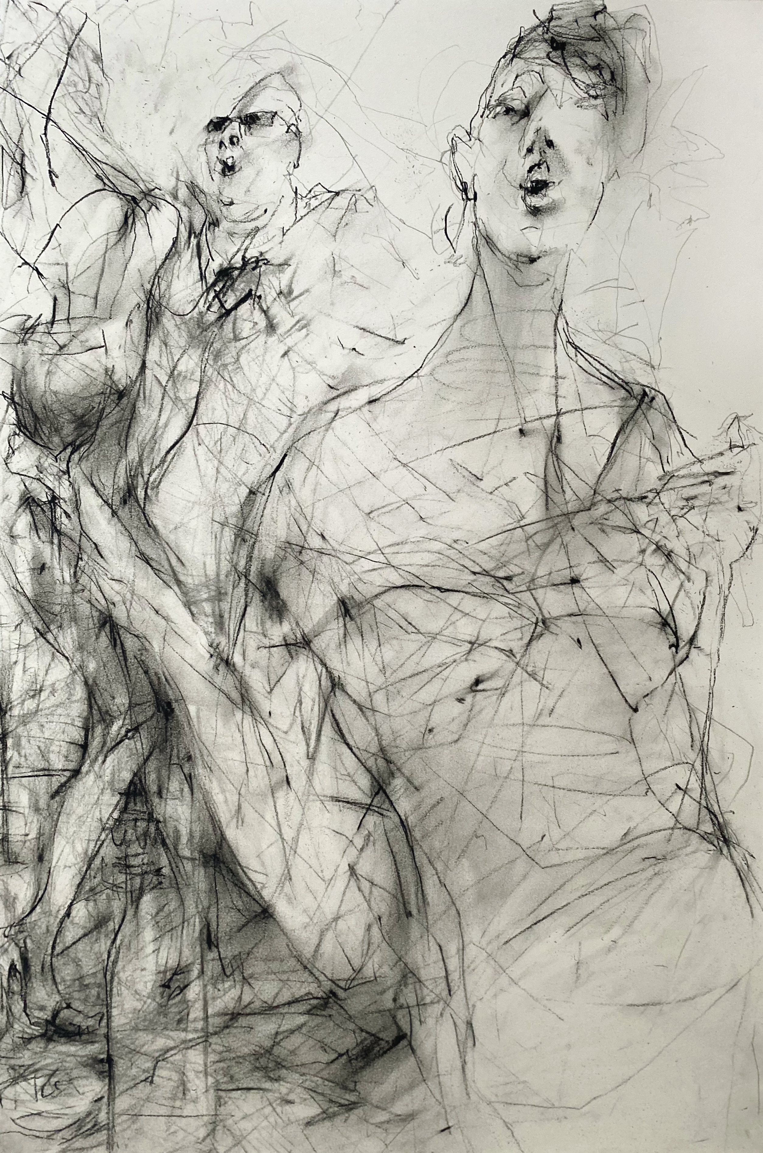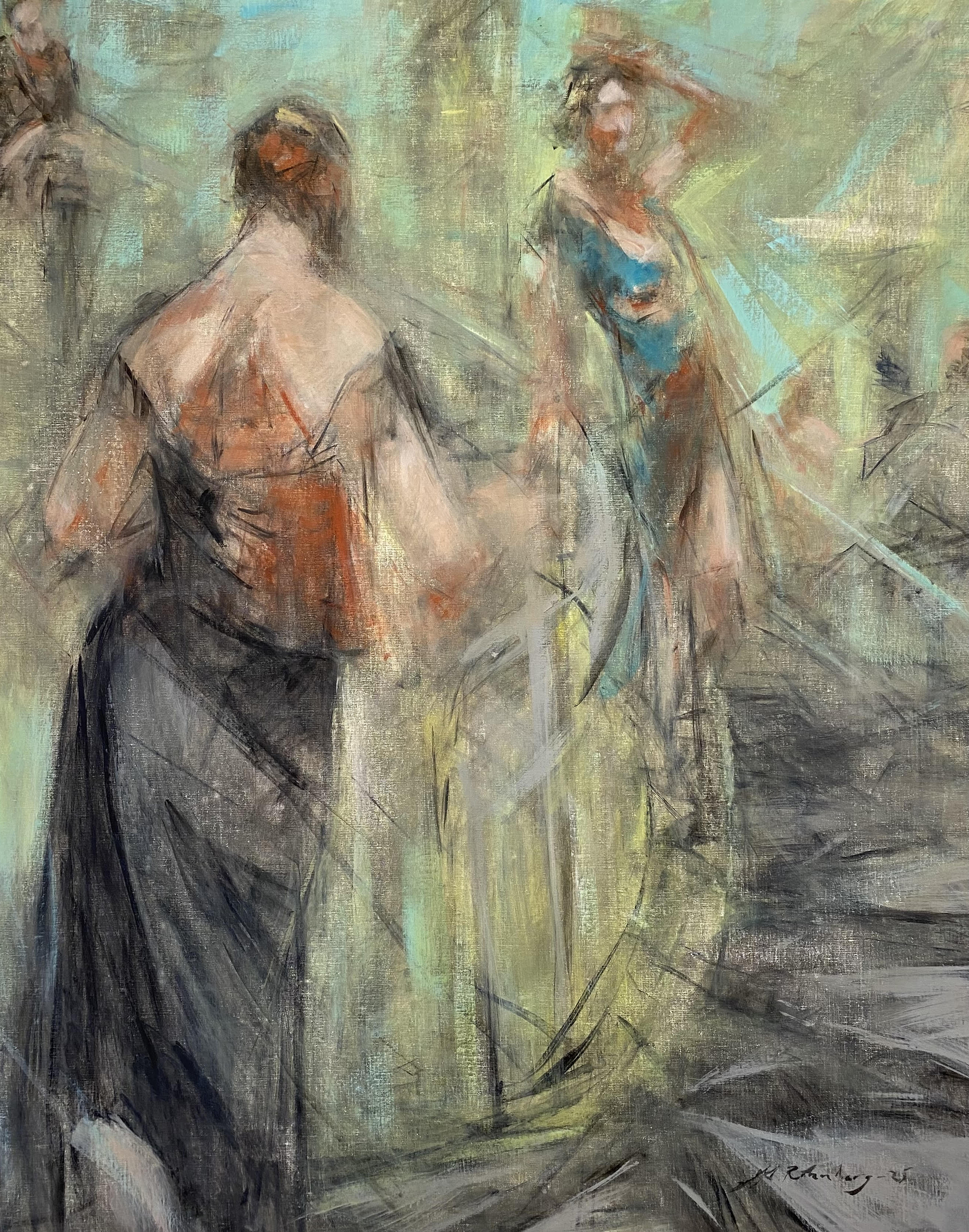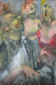Ett figurativt måleri med en komposition som rymmer flera samtidiga händelser och målningar i målningen. Med det iscensätter jag och vill skapa en dramatik och dynamik mellan gestalterna. Jag söker liv och rörelse i kroppar och uttryck, leker med kroppsspråk och mimik. Jag inspireras av min egen process, en del i en målning kan bli ingång till en teckning eller mindre målning.