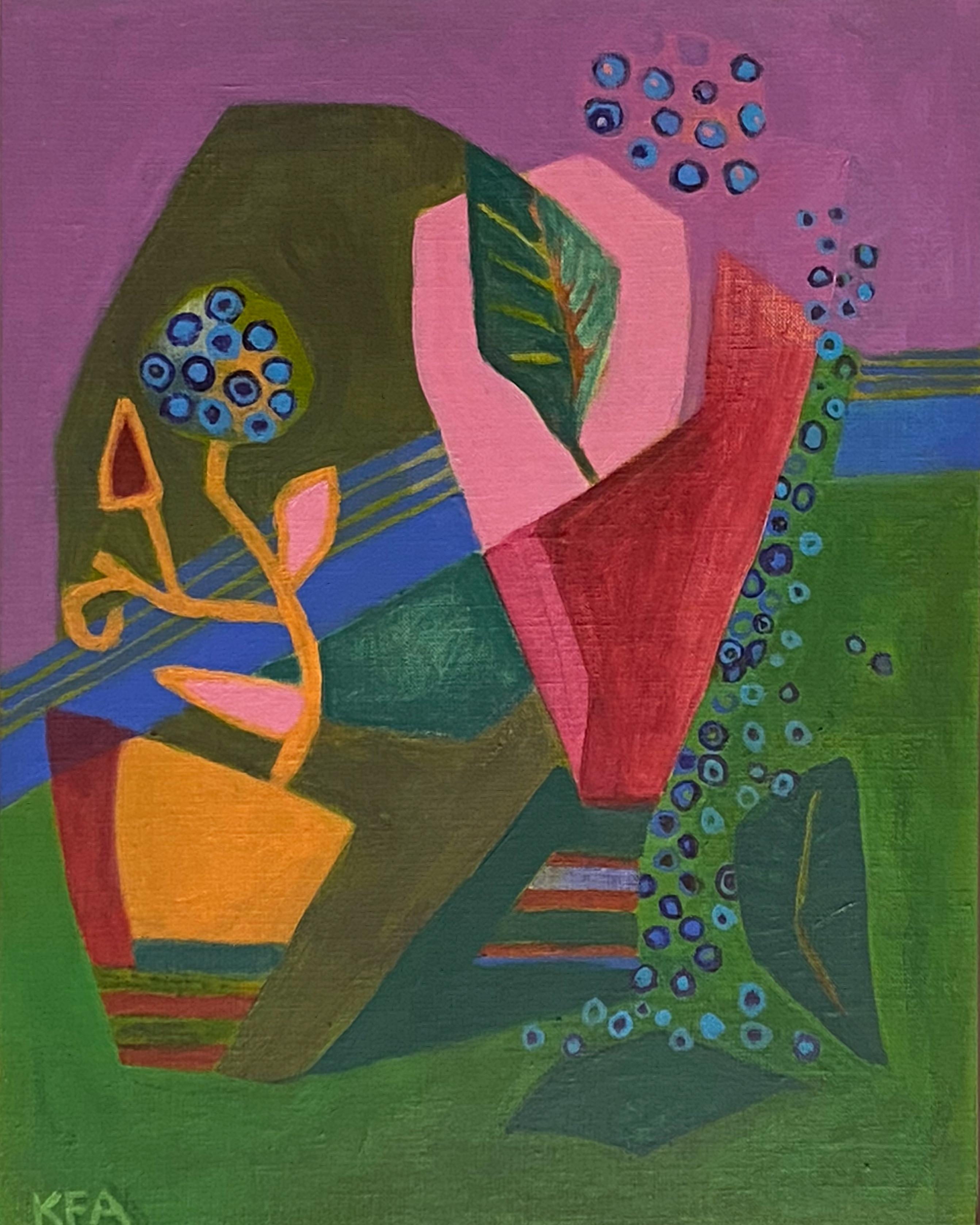 Min utmaning är att skapa ett problem genom att lägga på färg i en salig bandning på en vit duk och låta färg och form spela med och mot varandra.