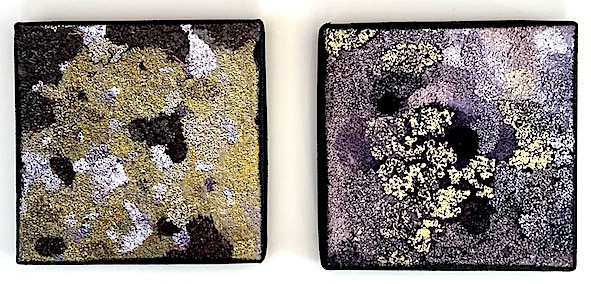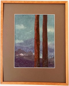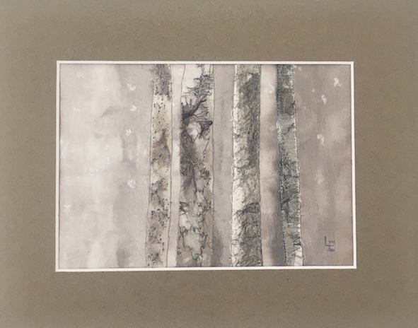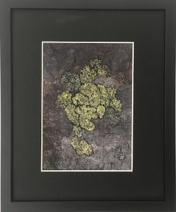 Motiven hämtar jag från naturen; trädstammar, mossor och lavar på träd och stenar är speciellt intressanta. Av vissa textila bilder gör jag gicléetryck.
