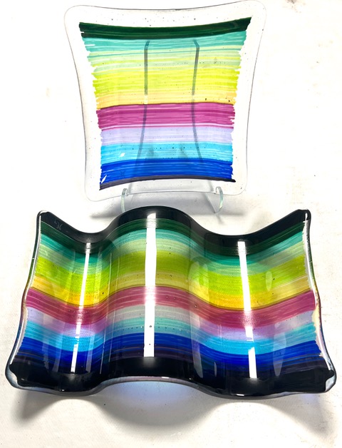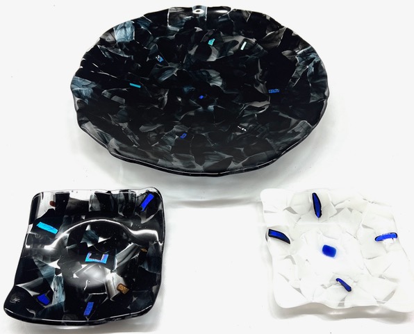 Ibland smälter jag glaset med mosaikmönster eller jobbar med glaspulver.