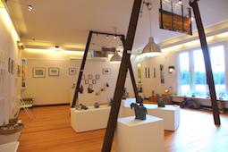 Här har vi skapat en upplevelserik konstmiljö med galleriet som central punkt mellan textilateljé med smyckesboudoir och glasstudio. Galleriet är handikappanpassat.