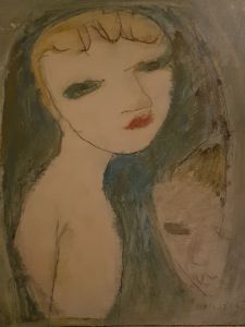 ”Skulpterat kom han att överge för att ägna sig åt måleri och då främst åt porträttkonst, ljust pastelltonad fast det handlar om olja på duk. Flickansikten med sin dröjande blyghet, dimmigt blå-grönt och så ett blyertsstreck till kontur och stadga.”